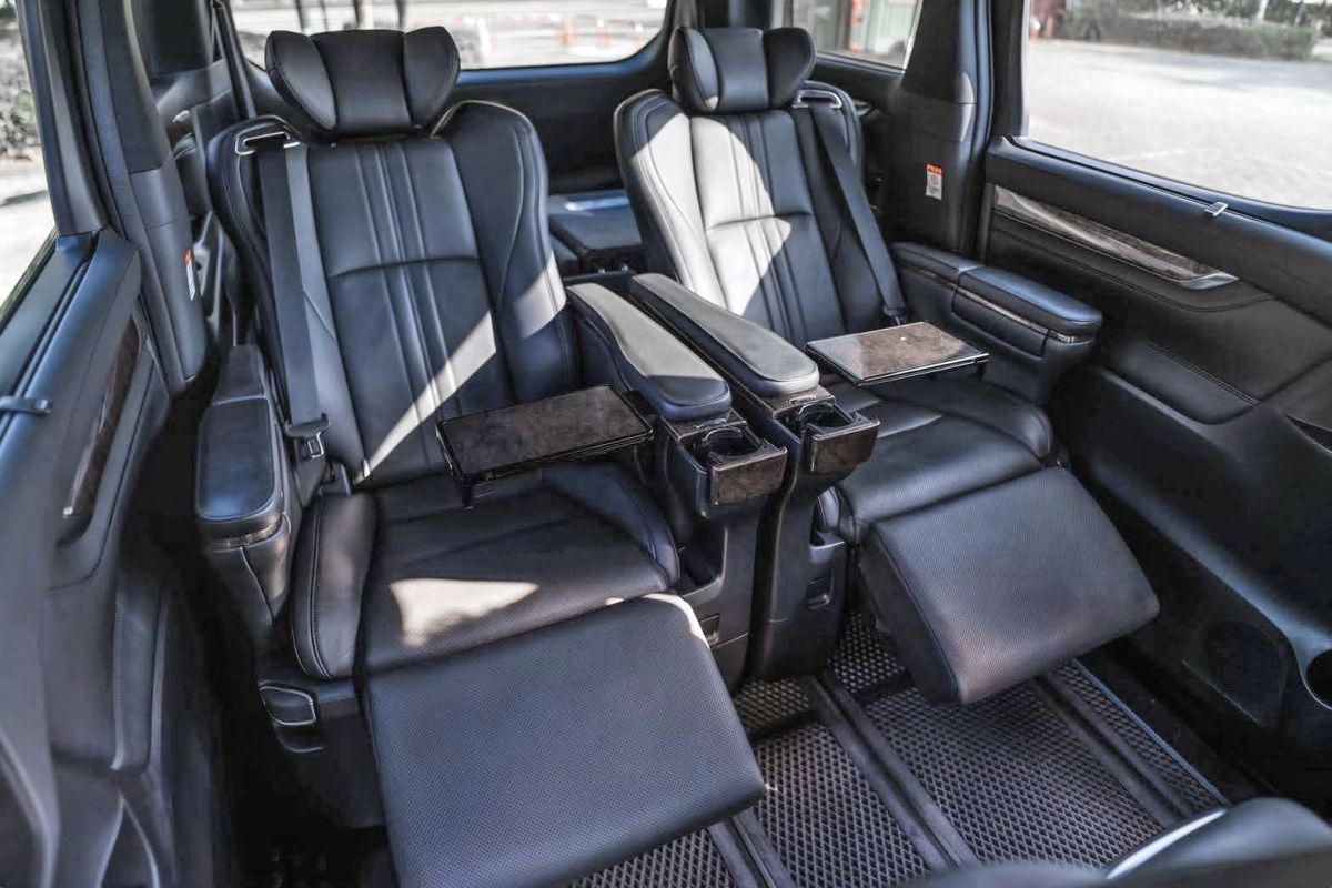 A: Alphard車款為七人座,其座次分布為 2 / 2 / 3 ;建議乘坐人數為司機一位,乘客五位以內為佳 。